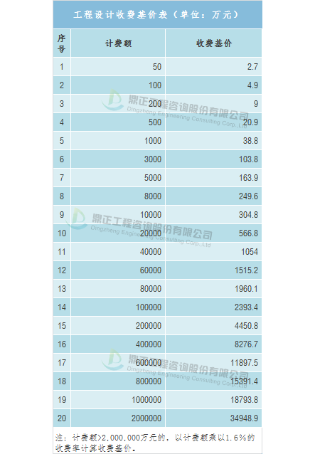 Сбор за инженерное проектирование может основываться на « Уведомлении Государственной комиссии по планированию развития и Министерства строительства об издании « Положения об управлении сборами за инженерные изыскания и проекты» (расчетная цена [2002] № 10), используя метод расчета фиксированной платы в соответствии с объемом инвестиций в смету отдельных строительных проектов.