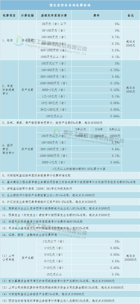 Все консультационные организации, участвующие в сборе за услуги по управлению бюджетными показателями, могут ссылаться на местные тарифы, такие как местные стандарты провинции Хубэй - « Циркуляр Департамента финансов провинции Хубэй о выпуске « Временных мер по участию сторонних учреждений в управлении бюджетными показателями в провинции Хубэй» (« Правила финансовой деятельности провинции Хубэй» (« Правила финансовой деятельности провинции Хубэй» (« Правила финансовой деятельности провинции Хубэй») (« Правила финансовой деятельности провинции Хубэй» (« Правила финансовой деятельности провинции Хубэй») (« Правила финансовой деятельности провинции Хубэй») (« Правила финансовой деятельности провинции Хубэй») (« Правила финансовой деятельности